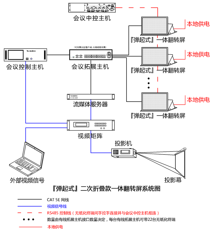 3、系統可(kě)以擴展第三方網絡中控,從(cóng)而實現(xiàn)任意會(huì)議(yì)終端(經過授權)随時(shí)對(duì)周邊設≥備進行(xíng)控制(zhì);第三方中控可(kě)通(tōng)過RF/RS 485協議(yì)對(duì)翻轉進行(xíng)統一(yī)控制(zh✔ì)。